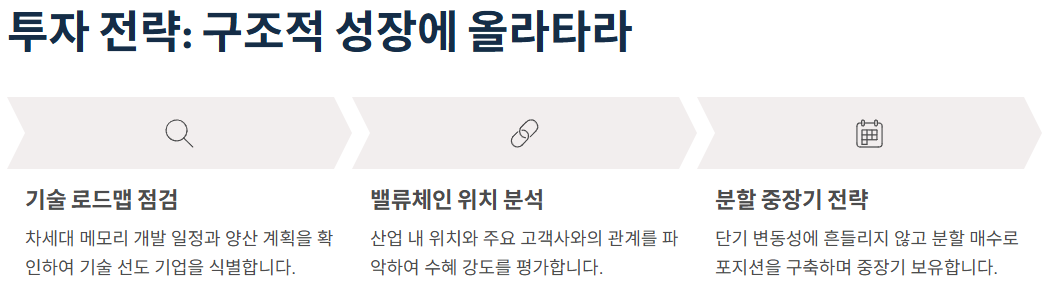 | SK하이닉스 | HBM·DRAM | AI 메모리 중심 | HBM 시장 선도 |