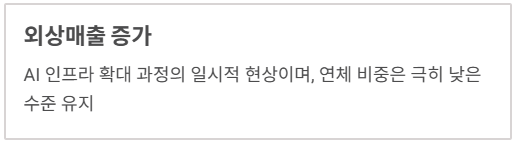 우선 자사주 매입과 관련해서는 “매입 단가가 과거 평균보다 낮고, 이는 주주가치 제고에 부합하는 결정”이라고 밝히며, 단기 주가 부양용이라는 지적을 반박했습니다. 또한 매출채권(외상매출)의 증가는 AI 인프라 확대 과정에서 나타나는 일시적 현상이며, “연체 비중은 극히 낮다”고 강조했습니다.
