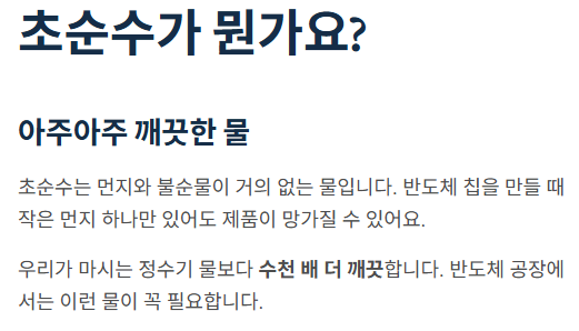 | 솔브레인 | 반도체·디스플레이 소재 | 초순수 사용 공정과 연관 | 소재 수요 확대 |