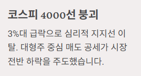 2025년 11월, 코스피가 3%대 급락하며 4000선 아래로 빠졌다. 미국 기준금리 인하 기대감 후퇴와 AI 거품론 부각이 이번 급락의 주요 원인으로, 기관과 외국인 대규모 매도, 반면 개인 투자자의 저가매수, 반도체·기술주 중심 하락이 돋보였다. 환율 급등, 투자판도 변화까지 복합적 리스크가 시장을 뒤흔들었다.
